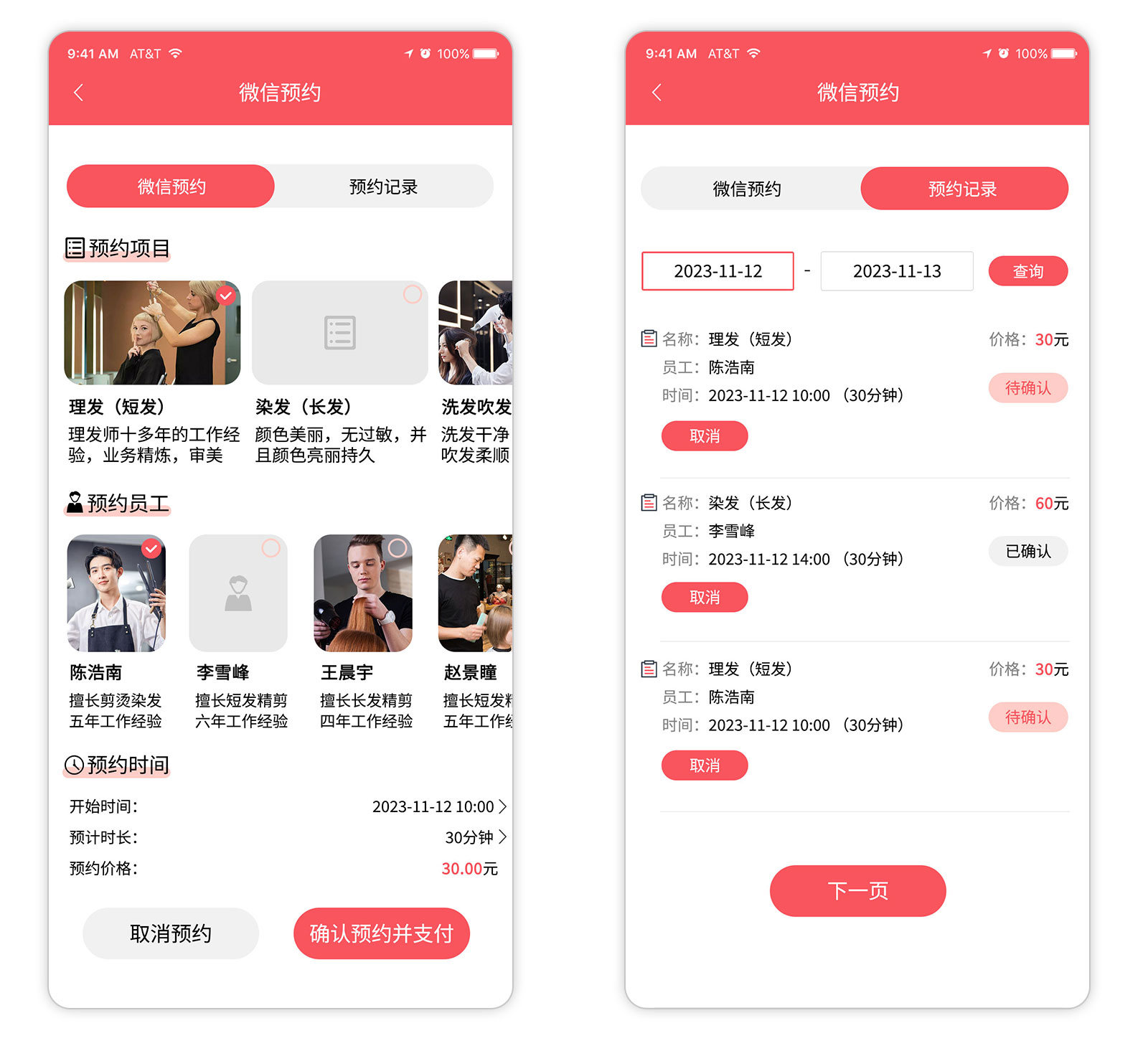 PosHere美业小程序,主要是方便会员登录,查看最新活动、发型作品、微信预约、查看预约记录、拼团等功能!